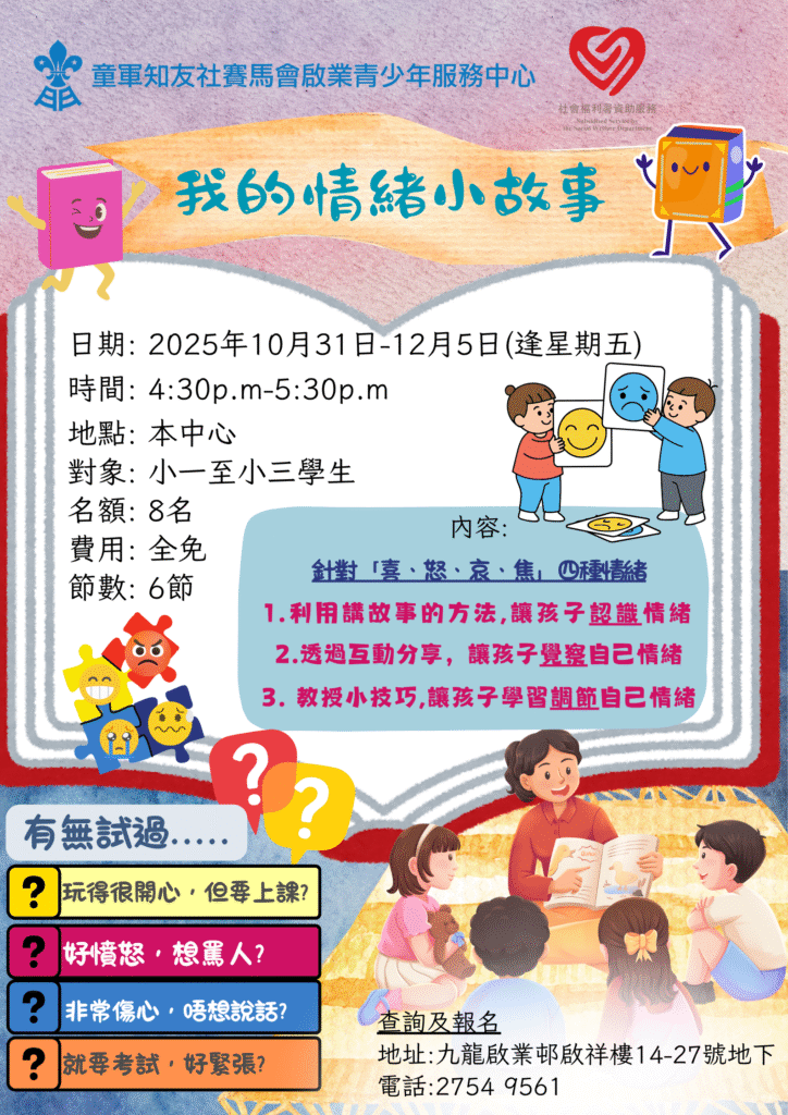 ⭐針對「喜、怒、哀、焦」四種情緒,透過講故事的方法、互動分享和教授小技巧,讓孩子認識、覺察和調節自己情緒。