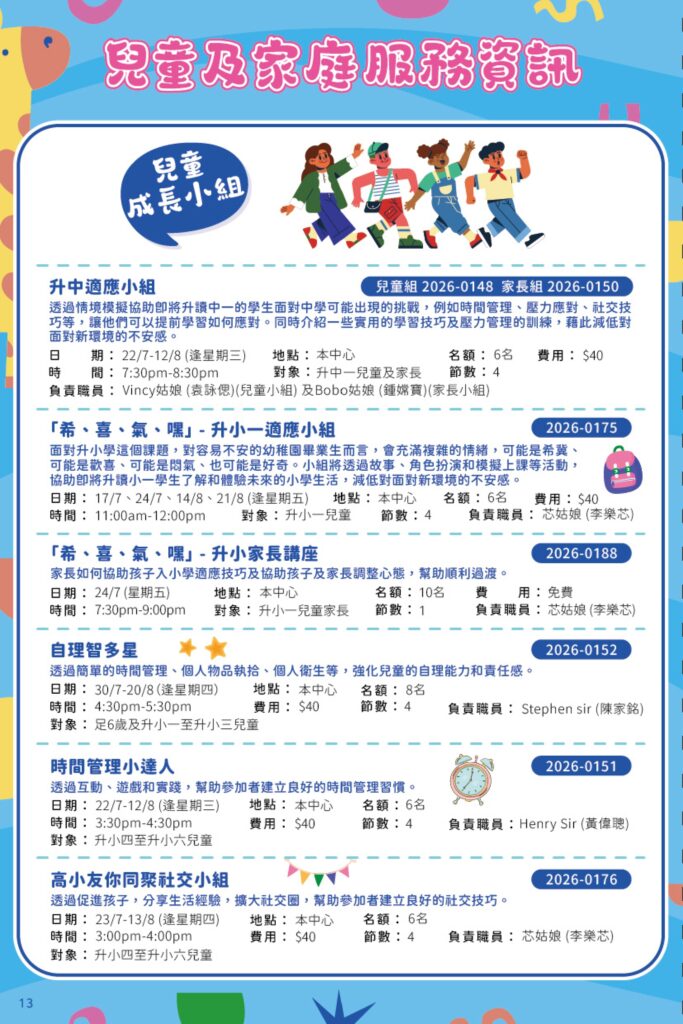2026 7-9月中心通訊 PDF 2026 7-9月中心通訊 PDF Author: Post navigationPreviousPrevious post:2026年4-6月活動通訊Related Posts2026年4-6月活動通訊表達藝術與乾花工作坊活動宣傳從業員分享活動花絮📸MindfulKids®️ 第一階段訓練證書課程親子桌遊小組活動宣傳好學生全人發展計劃-尊師敬師文化小組及活動花絮