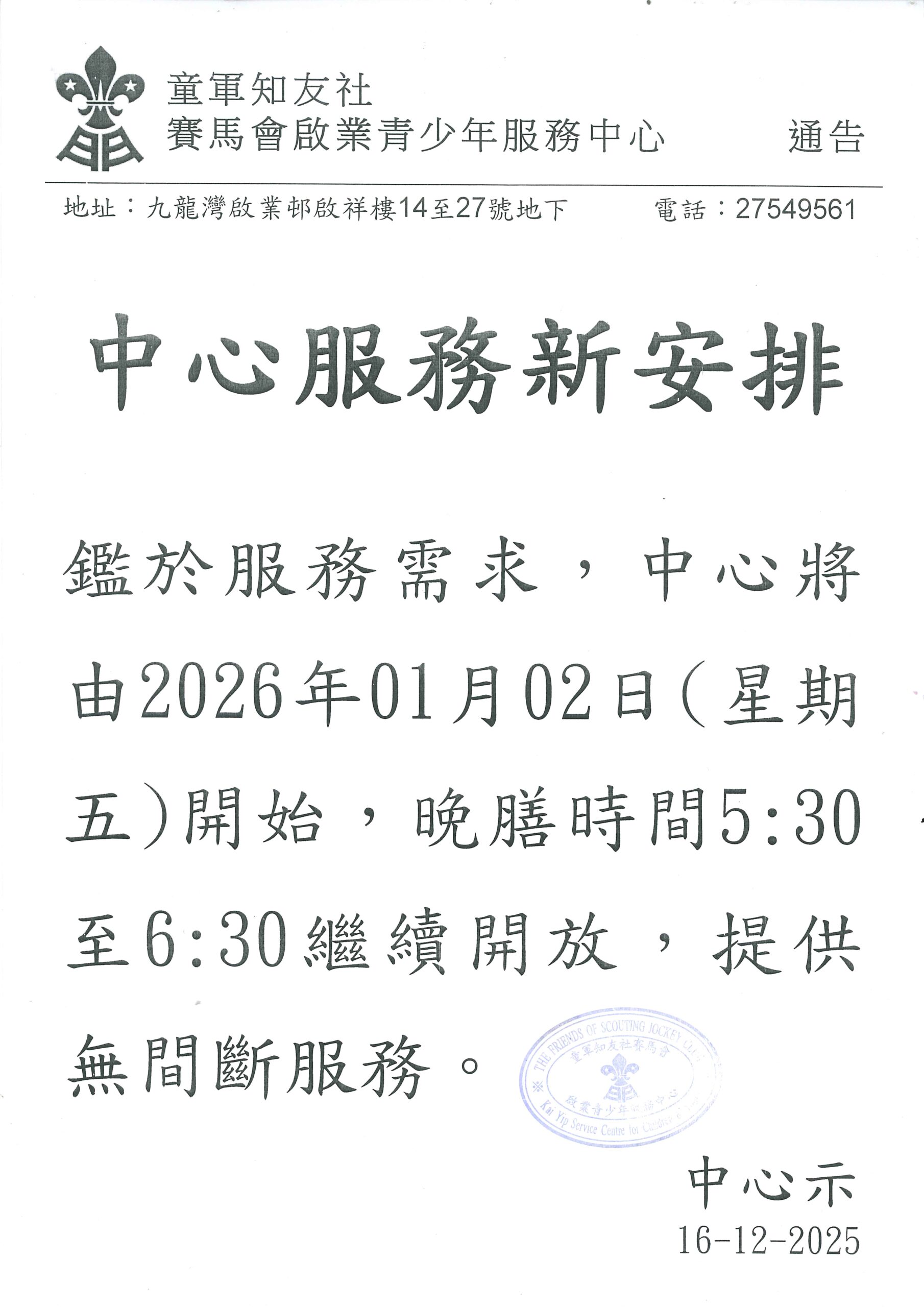 特別天氣安排